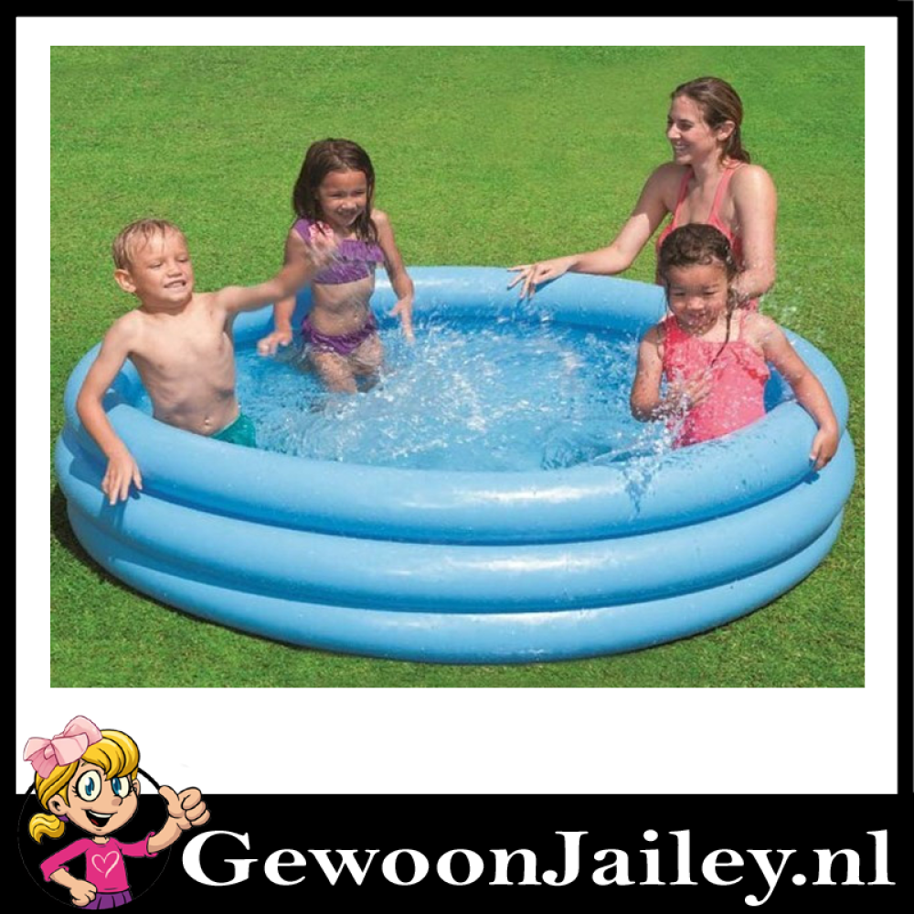 Op zoek naar verkoeling op een warme zomerse dag? Met dit Intex Crystal Blue kinderzwembad haal jij je eigen zwembad naar je achtertuin! Dit kinderzwembad, met een blauwe ronde vorm en een opblaasbare rand, is perfect geschikt voor kinderen vanaf 3 jaar. Het beschikt over drie luchtkamers en dubbelventielen, waardoor het snel en gemakkelijk op te zetten is. Met een diameter van 147 centimeter en een hoogte van 33 centimeter, biedt het voldoende ruimte voor waterpret in de zon. Na het opblazen van de rand met de drie ringen, kan het zwembad eenvoudig gevuld worden met water.